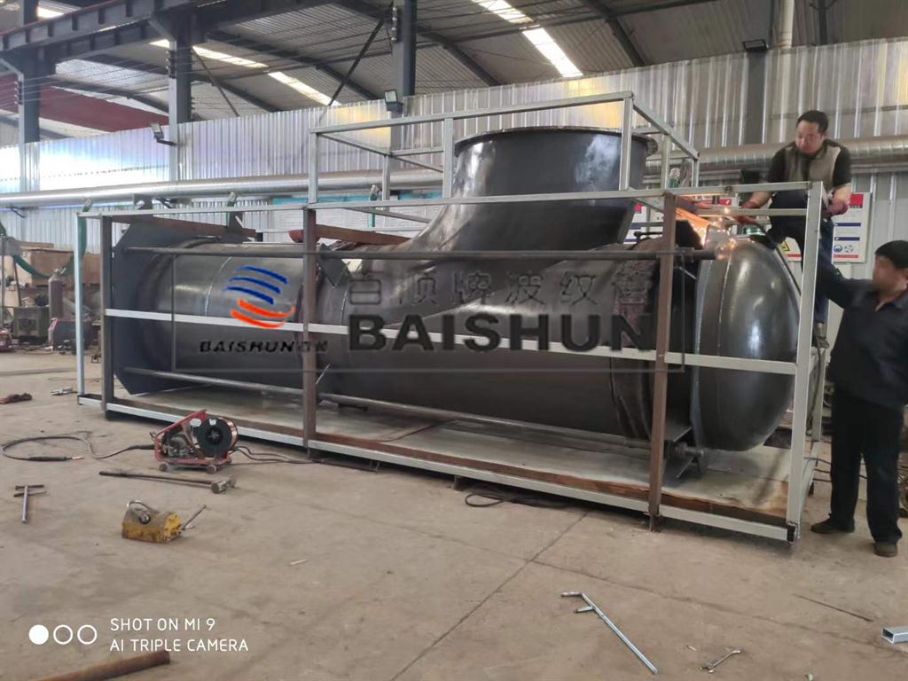 用戶根據(jù)管系熱位移情況選定了合適的波紋補償器以后,通用型波紋補償器至少還得提供管內(nèi)的流通介質(zhì),煙風道的設計壓力,運行時的高溫度,煙風道橫截面的外形尺寸(長、寬)所選用的波形(全高216mm、半高108mm)和波數(shù)(單個波紋單波數(shù)不_6波),以便我們進行補償器的結(jié)構設計和制造。