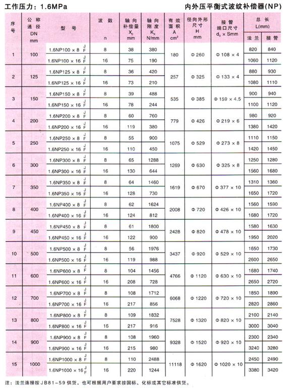 內(nèi)外壓力平衡式波紋補(bǔ)償器(NP)參數(shù)2