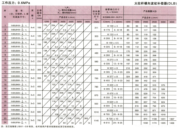 大拉桿橫向波紋補(bǔ)償器(DLB)參數(shù)1