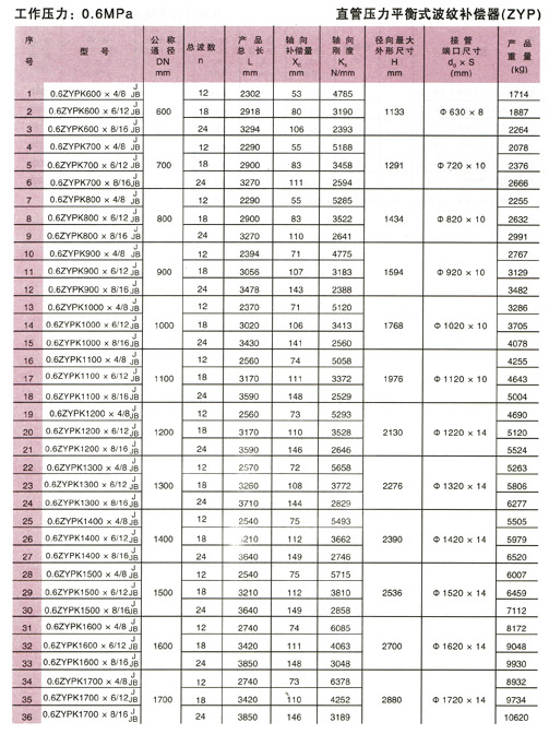 直管壓力平衡波紋補(bǔ)償器(ZYP型) 參數(shù)1