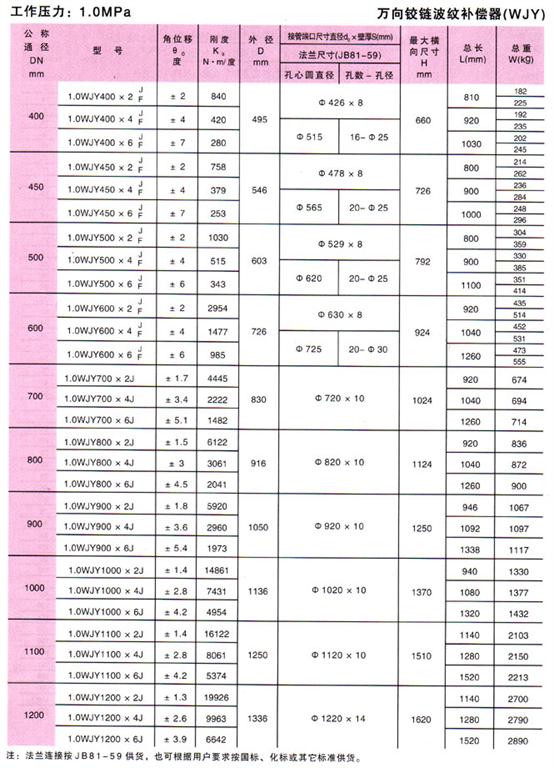 萬(wàn)向鉸鏈波紋補(bǔ)償器(WJY)參數(shù)5