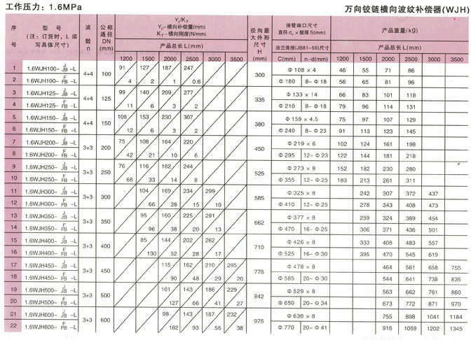 萬向鉸鏈橫向波紋補償器(WJH)產(chǎn)品參數(shù)5