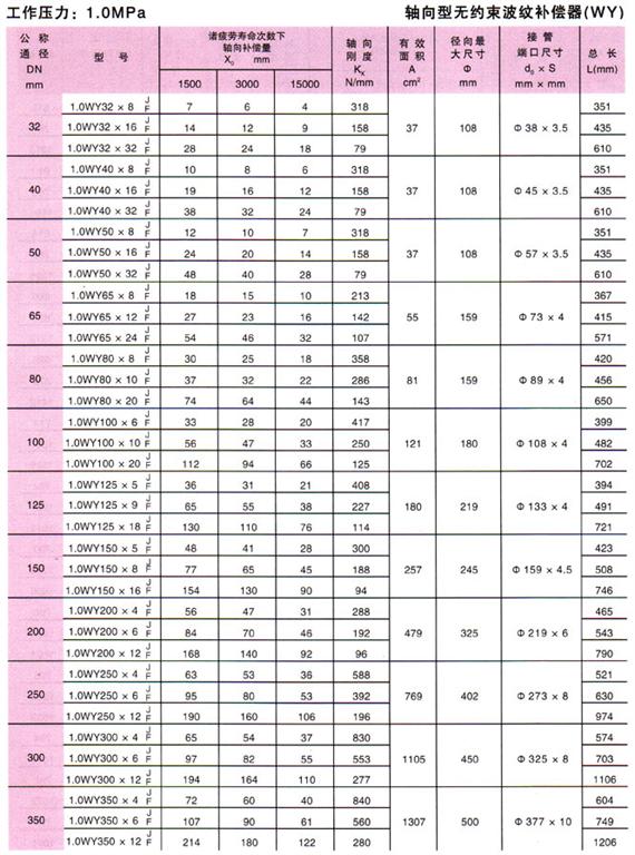 無約束波紋補(bǔ)償器(WY)參數(shù)3