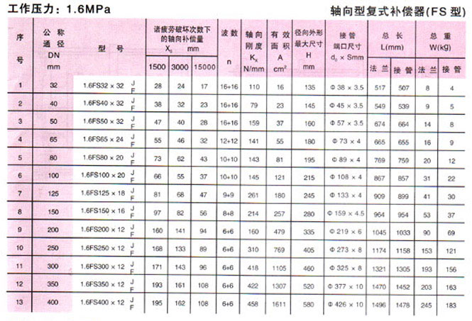 軸向型復(fù)式波紋補(bǔ)償器(FS型)參數(shù)2