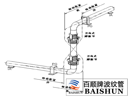 2、鉸鏈型補償器的鉸鏈轉(zhuǎn)動平面應(yīng)與位移轉(zhuǎn)動平面一致。
